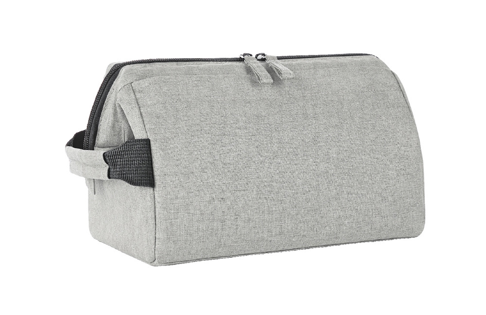 Stylish zip pocket bag with sturdy metal hoop opening for upright standing or hanging; rPET outer... more