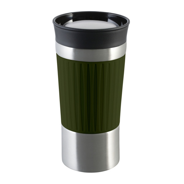 Der hochwertige Thermobecher myKingston wird mit einer Griffmanschette aus Silikon optisch an das Corporate Design des Kunden angepasst. Der doppelwandige Thermobecher mit Kupfer-Vakuum- Isolierung ist in pulverbeschichtetem Weiß, Schwarz, Hellgrau oder Edelstahl Anti-Finger-Print erhältlich. Es stehen 18 verschiedene Silikonfarben zur Auswahl. Der Thermobecher hält Getränke bis zu 6h warm und bis zu 24h kalt.