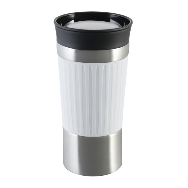 Der hochwertige Thermobecher myKingston wird mit einer Griffmanschette aus Silikon optisch an das Corporate Design des Kunden angepasst. Der doppelwandige Thermobecher mit Kupfer-Vakuum- Isolierung ist in pulverbeschichtetem Weiß, Schwarz, Hellgrau oder Edelstahl Anti-Finger-Print erhältlich. Es stehen 18 verschiedene Silikonfarben zur Auswahl. Der Thermobecher hält Getränke bis zu 6h warm und bis zu 24h kalt.