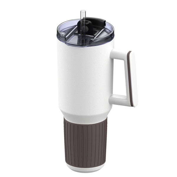 Der große Becher, den alle haben wollen! Dieser absolute Trendbecher mit Henkel, Deckel und Strohhalm ist nun auch farblich konfigurierbar erhältlich. Machen Sie den 1.200 ml Becher zu einem optischen Highlight: Kombinieren Sie ihn mit einem farbigen Silikon-Accessoire am Henkel und optional mit einem farbigen Silikon-Sleeve am verjüngten unteren Teil des Bechers.