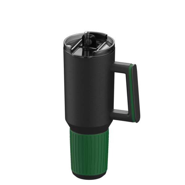 Der trendige Becher – jetzt in einer handlicheren Version! Dieser 900 ml Trendbecher mit Henkel, Deckel und Strohhalm ist farblich konfigurierbar. Machen Sie ihn zu einem optischen Highlight mit höherem Marken-Wiedererkennungswert: Kombinieren Sie den Becher mit einem farbigen Silikon-Accessoire am Henkel und optional mit einem farbigen Silikon-Sleeve am schlanken, unteren Teil des Bechers.