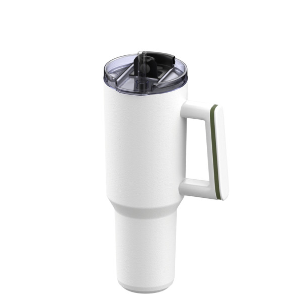 Der trendige Becher – jetzt in einer handlicheren Version! Dieser 900 ml Trendbecher mit Henkel, Deckel und Strohhalm ist farblich konfigurierbar. Machen Sie ihn zu einem optischen Highlight mit höherem Marken-Wiedererkennungswert: Kombinieren Sie den Becher mit einem farbigen Silikon-Accessoire am Henkel und optional mit einem farbigen Silikon-Sleeve am schlanken, unteren Teil des Bechers.
