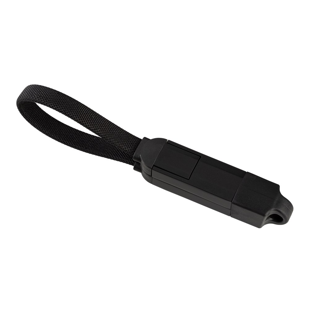 Dieses handliche 4-in-1 Lade- und Datenkabel ist perfekt für Unterwegs und auf Reisen. Mit seiner Schlaufen-Form kann das Kabel am Schlüsselbund oder Gepäck angebracht werden. Das kleine 60 Watt Kraftpaket kann Ihre Geräte im Handumdrehen laden. Verfügbar in edlem Schwarz, bietet das USB-C auf USB-C Ladekabel einen USB-A-Adapter und einen 8-Pin-Adapter für Apple®.