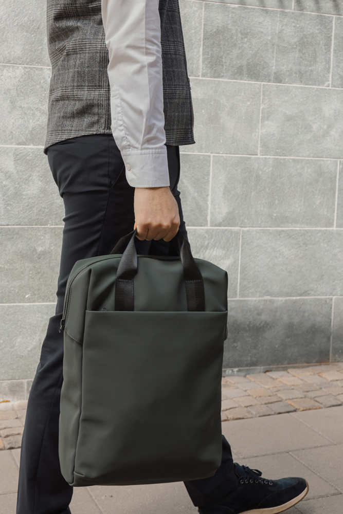 Eine handliche Tasche mit schlankem Design. Kann als Tragetasche oder Rucksack getragen werden. Die Tasche verfügt über eine breite Reißverschlussöffnung zum bequemen Verstauen Ihres Laptops und anderer Wertsachen. Ein Riemen auf der Rückseite ermöglicht das Befestigen an einem Trolley für komfortables Reisen. Außerdem verfügt sie über eine große Fronttasche, eine Innentasche und einen praktischen Flaschenhalter. Zertifiziert nach RCS (Recycled Claim Standard), garantiert diese RCS-Zertifizierung, dass die gesamte Lieferkette der recycelten Materialien zertifiziert ist. Der Gesamtanteil an recyceltem Material basiert auf dem Gesamtgewicht des Produkts. Dieses Produkt enthält 19% RCS-zertifiziert recyceltes Polyester.