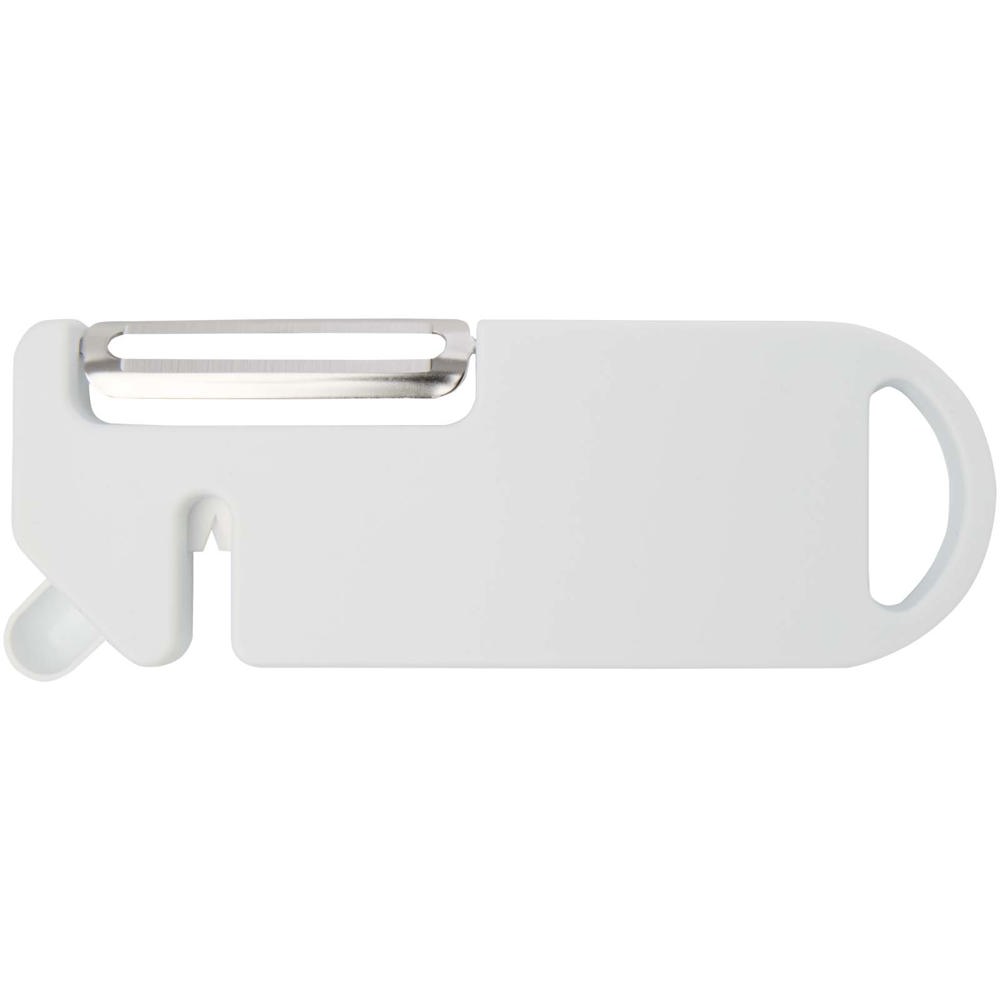 Dieses multifunktionale Küchengerät vereint vier unverzichtbare Funktionen in einem kompakten Design. Gefertigt aus recyceltem Kunststoff bietet es einen Schäler, einen Flaschenöffner, einen Messerschärfer sowie eine Spitze zum Entfernen von Kartoffelaugen. Ein integriertes Aufhängeloch sorgt für einfache Aufbewahrung. Praktisch und platzsparend – ein vielseitiges Must-have für jede Küche.