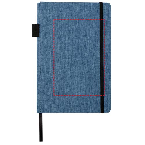 A5 Notizbuch mit einem Cover aus RPET-Stoff. Mit 96 Blatt, 70 g/m² recyceltes Papier mit liniertem Layout, Stiftschlaufe und Leseband. Verpackt in einer Kartonhülle.
