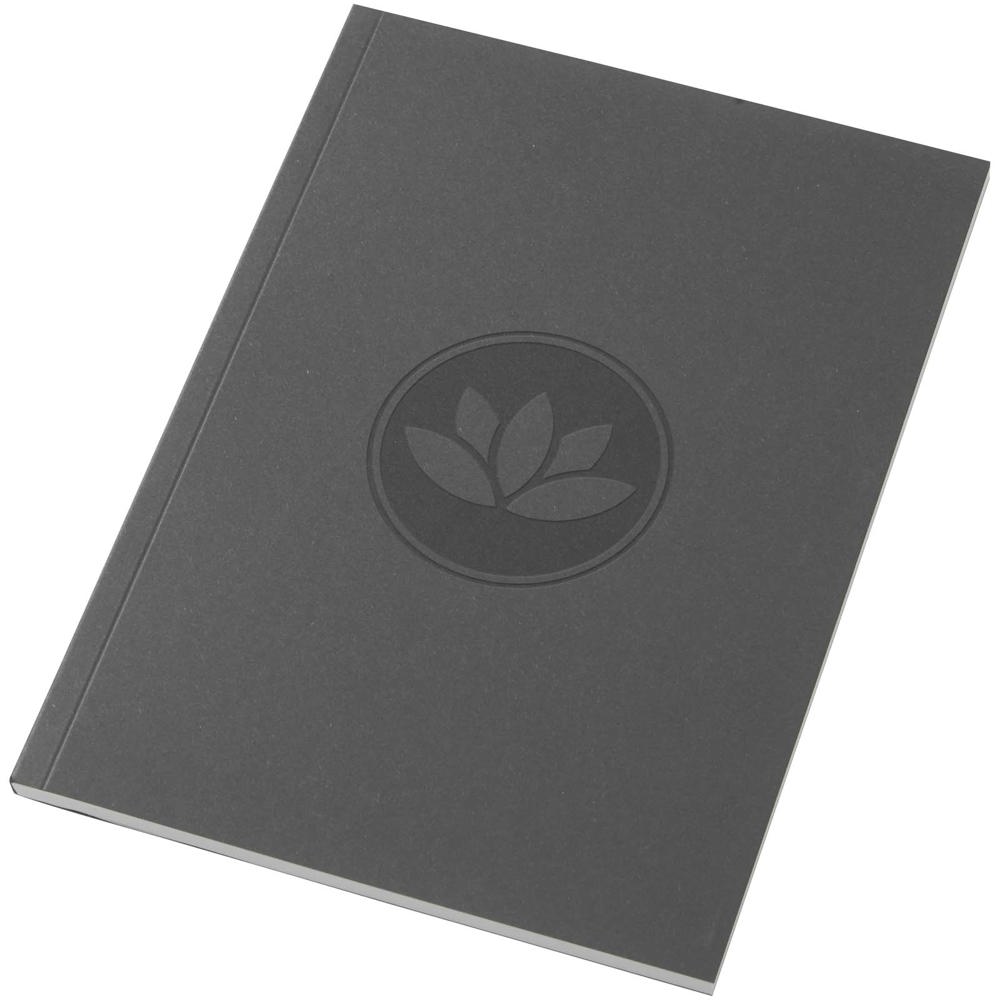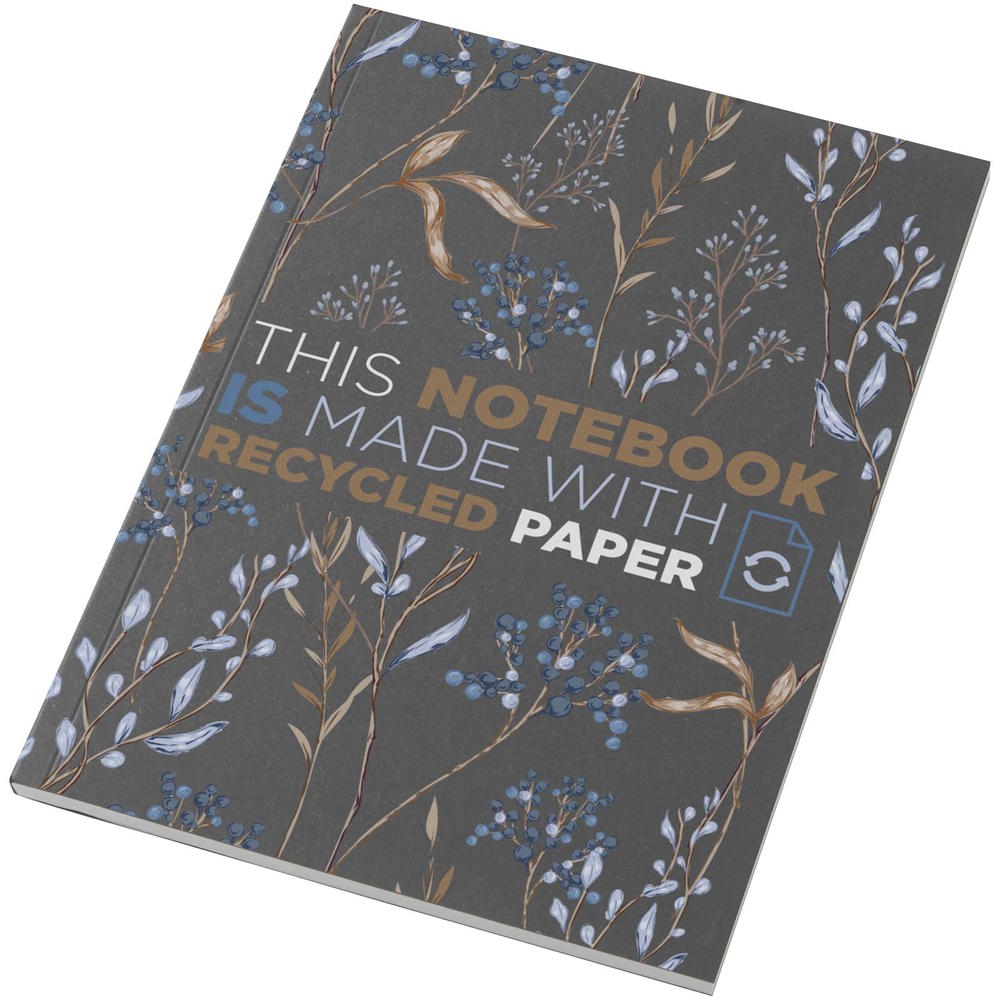 Das Novella Austen A5 Softcover-Notizbuch aus Recyclingmaterial ist dank seiner Vielseitigkeit ein fantastisches Schreibwaren-Giveaway. Das Notizbuch besteht aus 50 Blatt 80 g/m² recyceltem Papier. Die Blätter sind standardmäßig einfarbig, können aber auch mit einem Design Ihrer Wahl versehen werden, z. B. mit Linien, Quadraten oder Ihrem eigenen Design. Wir bieten auch Tip-in-Seiten mit Glanzfinish auf der Vorderseite des Notizbuchs an – ideal, um zusätzliche Informationen zu vermitteln. Der Einband besteht aus 285 g/m² Karton in verschiedenen Farben. Für einen echten Wow-Effekt können Sie auch den gesamten Einband (Vorder- und Rückseite, Buchrücken) farbig bedrucken lassen. Hergestellt in UK.