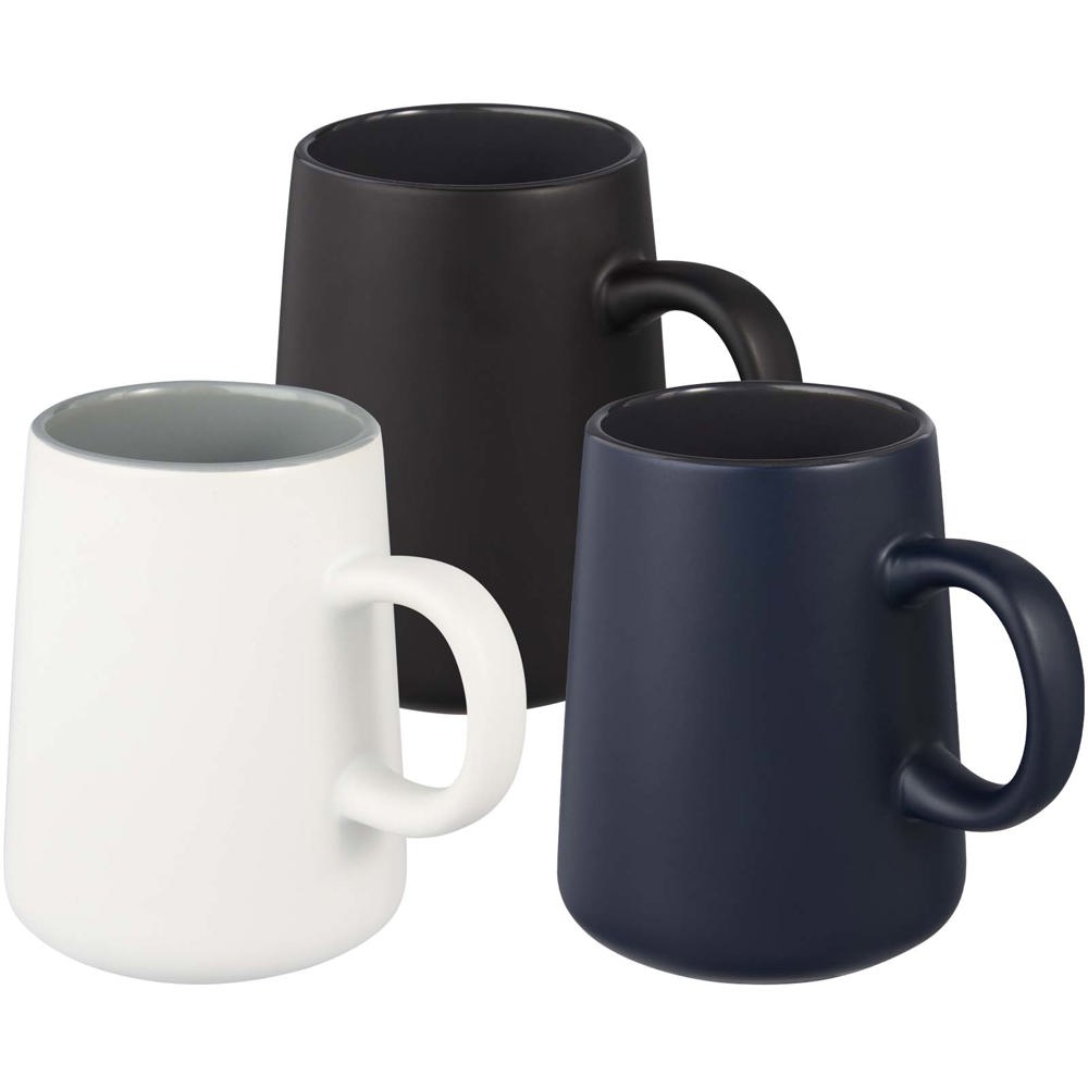 Die Joe Keramiktasse hat ein mattes Äußeres und ein glänzendes Inneres, mit einem runden und bequemen Griff. Das Fassungsvermögen beträgt 450 ml. Spülmaschinenfest einschließlich Aufdruck für die allermeisten Druckmethoden. Verpackt in einer Geschenkbox aus Recyclingkarton.
