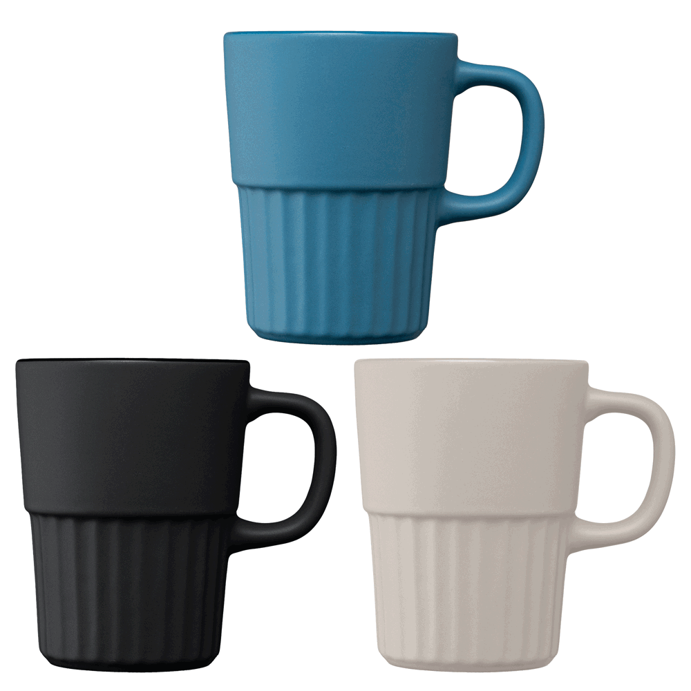 **Demnächst verfügbar – Mitte Februar** Entdecken Sie unsere Majesty Keramiktasse, eine vielseitige und elegante Tasse, die einen hochwertigen Eindruck vermittelt. Diese großzügige Tasse mit einem Fassungsvermögen von 445 ml ist aus strapazierfähigem Steingut gefertigt und verfügt über einen charakteristischen geriffelten Boden. Die Tasse bietet einen visuellen und haptischen Kontrast mit einer modernen matten Oberfläche auf der Außenseite und einer glatten, glänzenden Oberfläche auf der Innenseite. Vielseitig und praktisch, geeignet für warmde und kalte Getränke, BPA-frei und von der FDA zugelassen. Diese Tasse ist in den Farben Stahlblau, Dune und Schwarz erhältlich und stellt eine hochwertige Wahl für den täglichen Gebrauch dar.