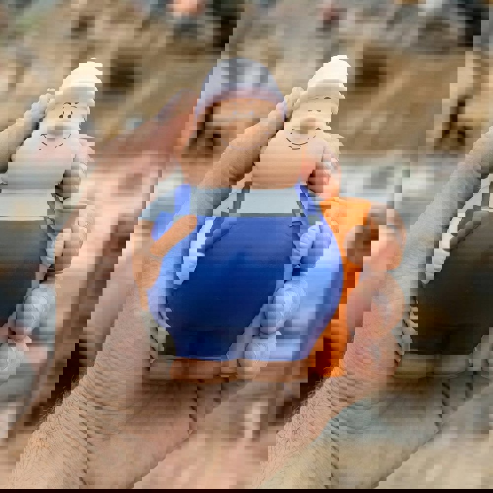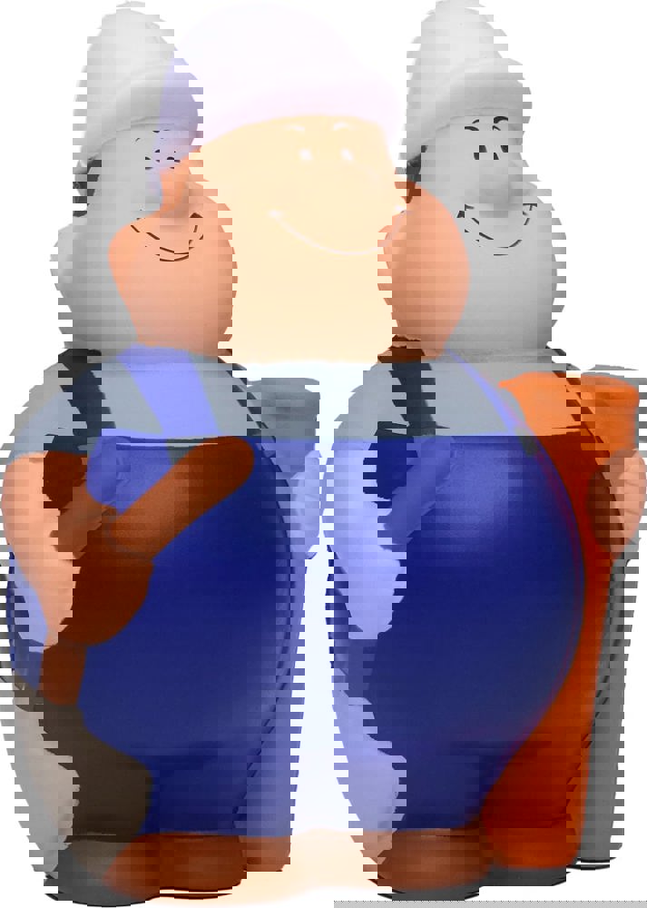 Hier kommt ein weiterer Kollege vom Bauarbeiter Bert®. Mit Schaufel und Rohr steht er im Blaumann für alle Tiefbauarbeiten bereit. Mit seinem fröhlichen Lächeln bringt er eine dicke Portion guter Laune mit. SQUEEZIES® Tiefbauer Bert® zum Abbau von Stress einfach "zusammenknautschen". Durch die Materialbeschaffenheit nimmt das Produkt die Ursprungsform wieder ein.