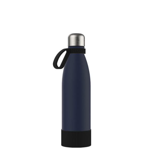 Für Heiß- oder Kaltgetränke, unsere doppelwandige Edelstahlflasche überzeugt durch trendiges und funktionales Design. Durch die Doppelwandigkeit mit Vakuum bleiben ihre Getränke lange kalt bzw. heiß. Die Trinkflasche kann mit edlem mattschwarzem, weißem Powder Coating oder natürlich silberglänzend bestellt werden. 500 ml Fassungsvermögen stehen zur Verfügung. Setzen Sie ihr Logo stilvoll in Szene auf der Trend Trinkflasche schlechthin.