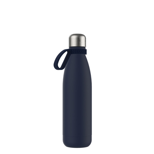 Für Heiß- oder Kaltgetränke, unsere doppelwandige Edelstahlflasche überzeugt durch trendiges und funktionales Design. Durch die Doppelwandigkeit mit Vakuum bleiben ihre Getränke lange kalt bzw. heiß. Die Trinkflasche kann mit edlem mattschwarzem, weißem Powder Coating oder natürlich silberglänzend bestellt werden. 500 ml Fassungsvermögen stehen zur Verfügung. Setzen Sie ihr Logo stilvoll in Szene auf der Trend Trinkflasche schlechthin.
