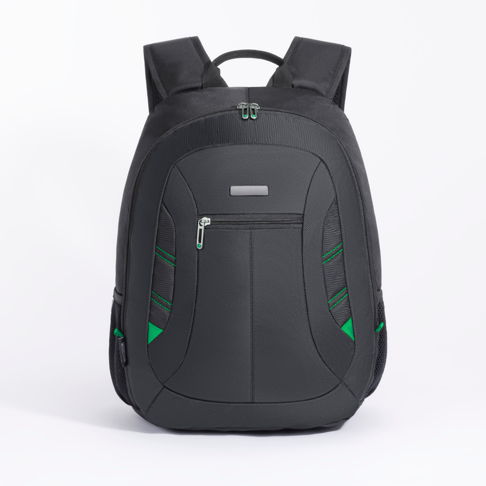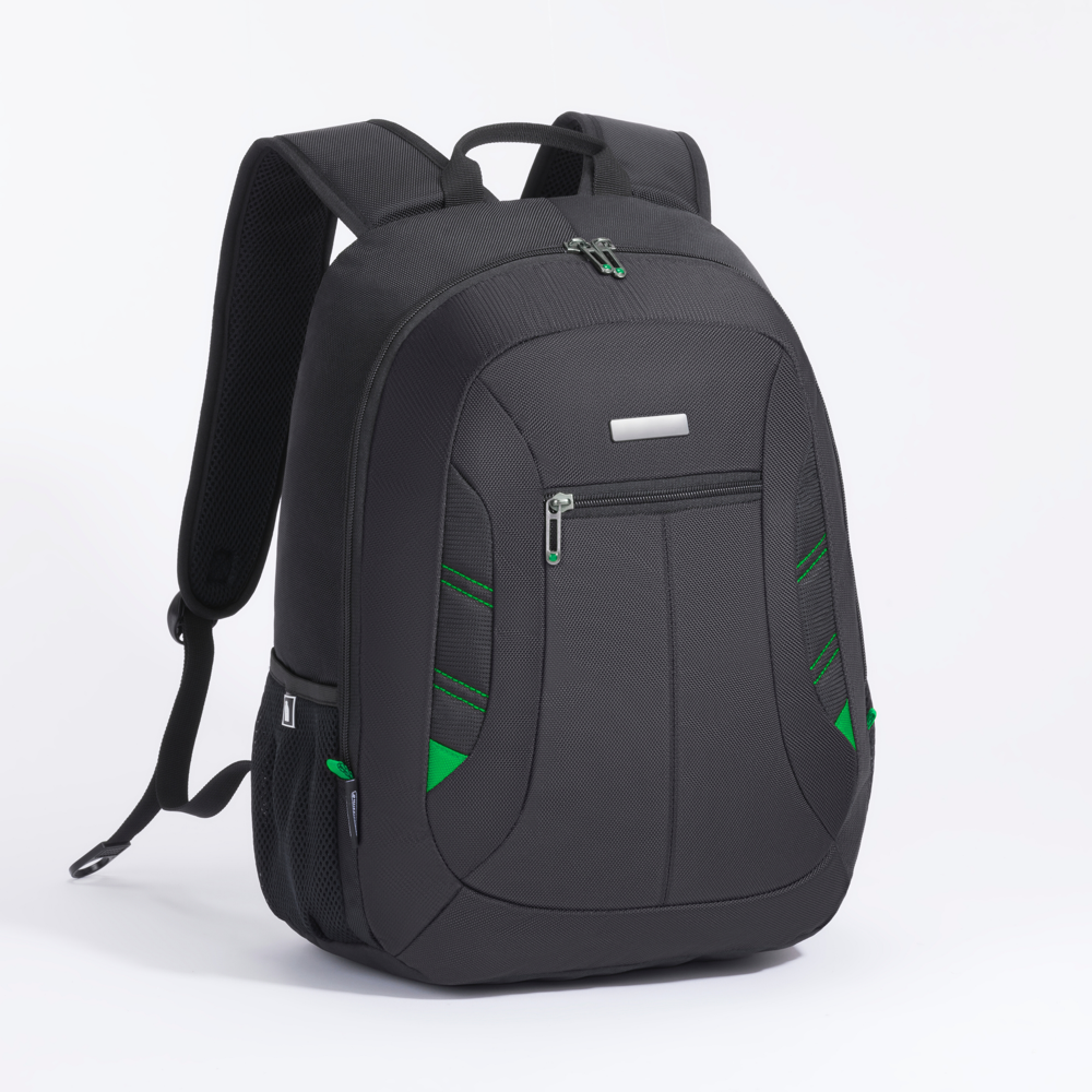 Der Rucksack City is leicht und geräumig, verfügt über ein Hauptfach mit einer 15-Zoll-Laptoptasche, Taschen für kleine Geschäftsutensilien und 2 Seitentaschen. Zusätzlich bietet das Modell einen verstärkter Rücken und Schultergurte, Metallreißverschlüsse und farbige Nähte. Dank einer eloxierten Metallplatte ist der Rucksack ideal für Branding.