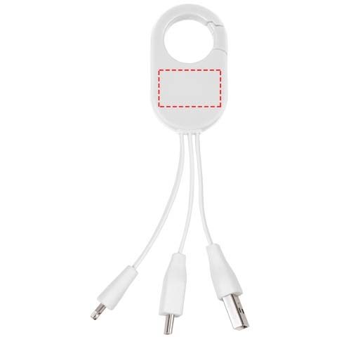 Das Troop 3-in-1-Ladekabel verfügt über einen USB Typ C-Stecker und einen doppelt kompatiblen 2-in-1-Stecker für Apple® iOS- und Android-Geräte. Es hat einen Karabinerhaken zum problemlosen Anbringen an Ihrer Tasche.