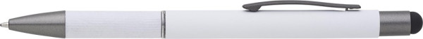 Aluminium ballpen with rolled paper details on the grip. Rubber tip for capactive screens. Blue ink. more