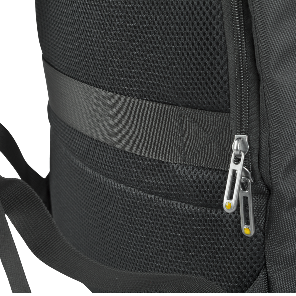 The backpack is constructed with high-quality materials, including 1680D polyester for durability, 210D polyester lining for added resilience, and gunmetal zippers. The back features an airchannel system for comfortable use, and also a fastening strap for attaching the backpack to the suitcase frame. For a personalized touch, the backpack is equipped with a metal badge, perfect for engraving.