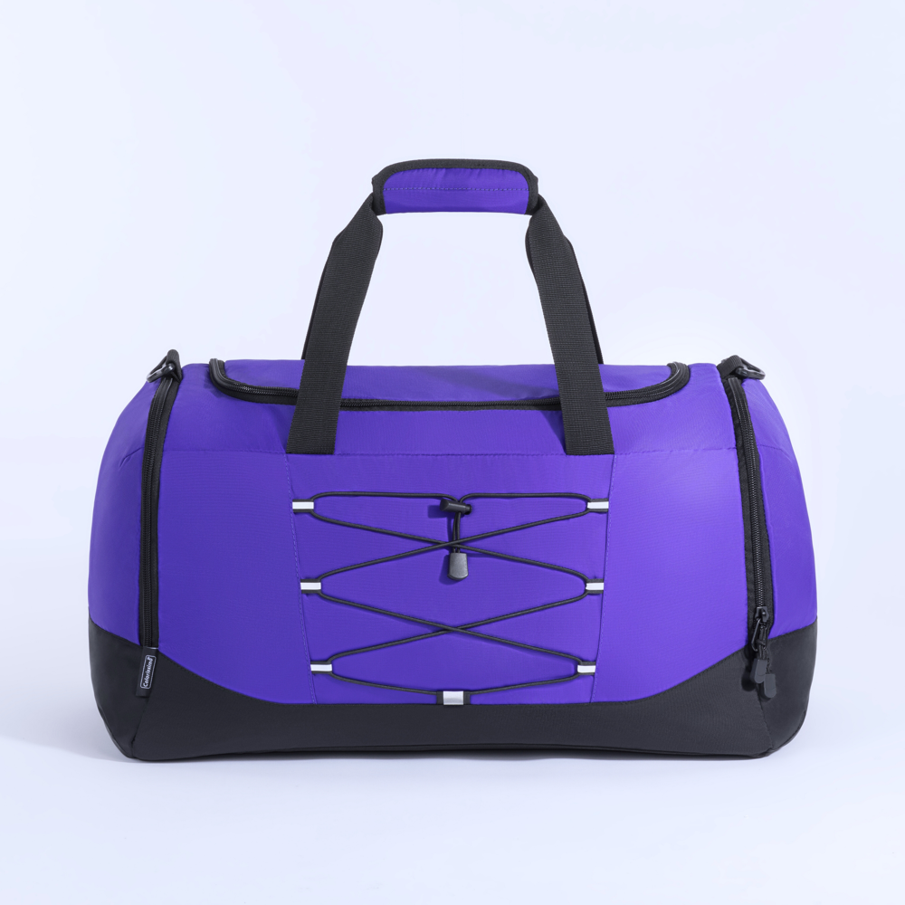 A lightweight and spacious sports bag in a dynamic and colourful design, perfect for active individuals who value comfort while traveling. Thanks to its functionality, it is ideal for workouts, sports trips, and everyday use. Product Features: • A vibrant and colourful base with contrasting black panels at the bottom. The front features an elastic bungee cord system that allows for easy attachment of additional items. • The bungee cord is secured to reflective elements, ensuring visibility and user safety in low-light conditions. • Zipper closure enables storage of large items such as sportswear, shoes, or training equipment. • A dedicated compartment for shoes, allowing for convenient and hygienic storage, separated from the rest of the bag's contents. • Two zippered side pockets, ideal for smaller accessories such as water bottles, wallets, or toiletries. • Durable, reinforced handles with a padded top ensure comfortable carrying. • Made of durable material, resistant to wear and moderate weather conditions. • Capacity: 40 L