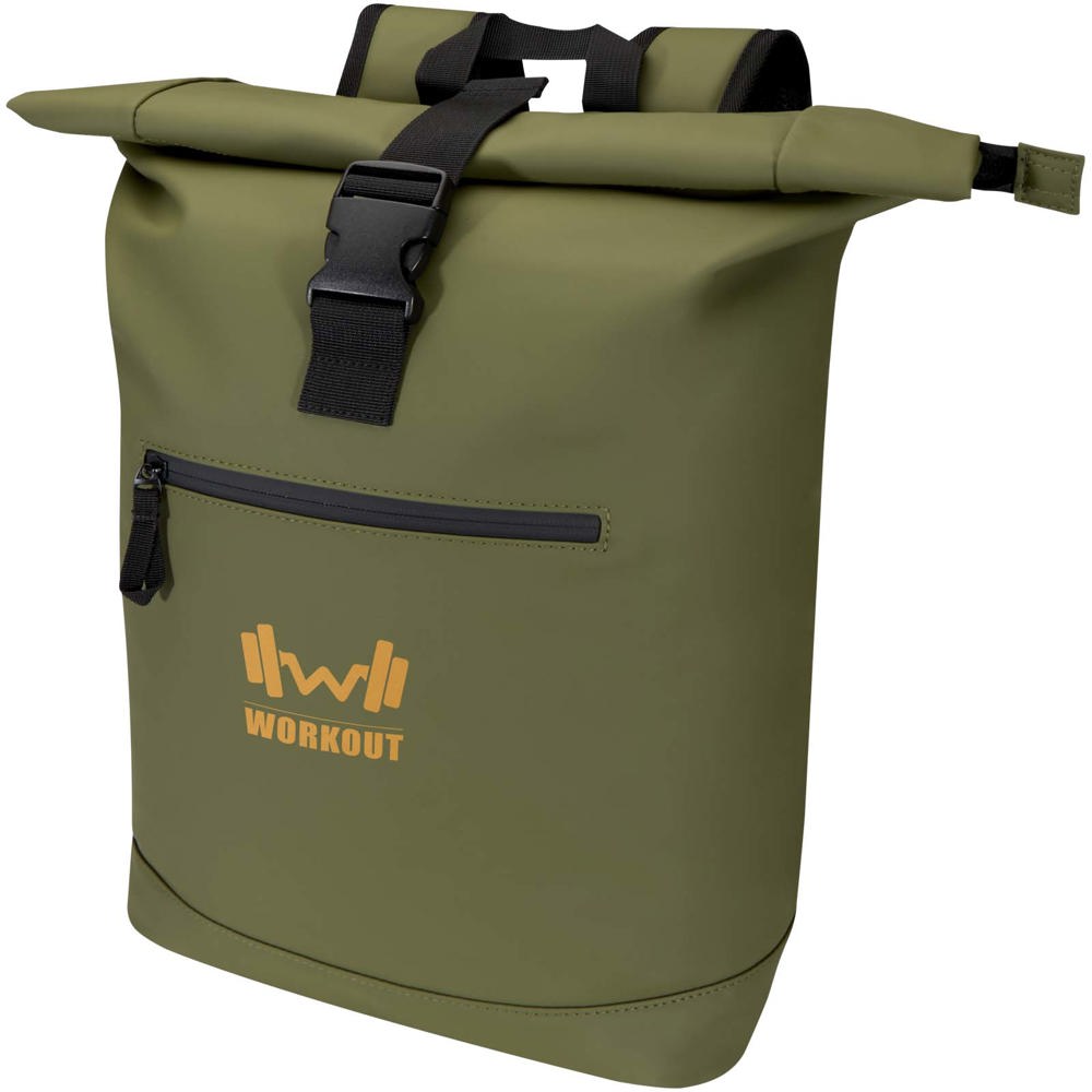 Crafted from premium recycled PU leather with colour-matching RPET lining, this rolltop backpack blends modern style with lasting durability. Its water-resistant finish keeps your essentials protected, while the rolltop closure offers flexible storage, perfect for commuting, travel, or the gym. Inside, a padded compartment fits laptops up to 15.6", with an additional zipped pocket to keep your tech and daily essentials organised. On the exterior, a front zipped pocket with a waterproof zip provides secure access, while padded, adjustable shoulder straps and a breathable back panel ensure all-day comfort.