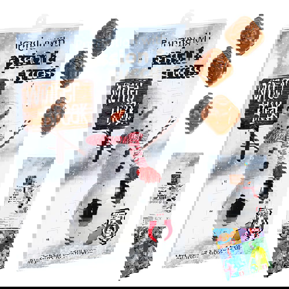 Wall advent calendar A4, portrait or landscape, filled with milk chocolate. Standard or custom, including removable promotional insert.