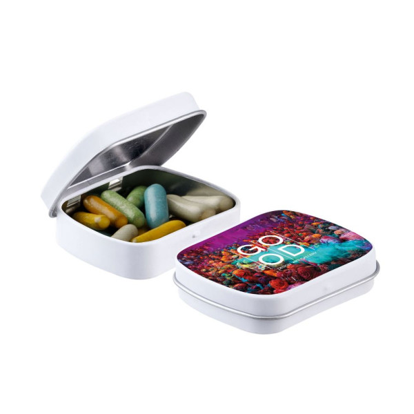 Mini hinge tin with candy
