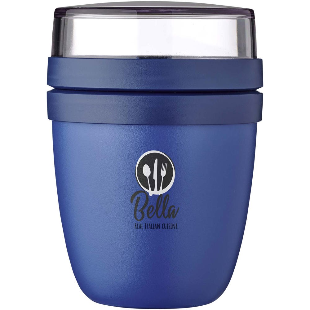 The Ellipse Mini lunch pot is perfect for a variety of snacks, such as yogurt with muesli or soup with croutons. Featuring two smart compartments in one sturdy container, it keeps your ingredients neatly separated. Its compact size makes it ideal for easily fitting into a school bag for a quick, convenient meal. The top transparent container holds 120 ml, ideal for around 50 grams of muesli or fruit, and the bottom container has a capacity of 300 ml. Leakproof and dishwasher safe. BPA free.