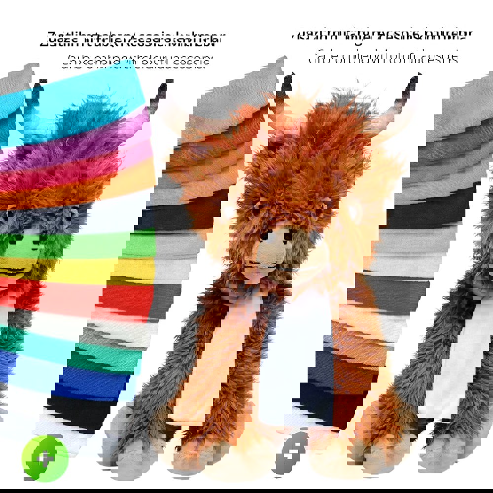 With its shaggy fur, distinctive horns and gentle gaze, the Scottish Highland cattle Bobby will win everyone's heart in no time at all. The fluffy cuddly toy not only brings a piece of nature into the living room, but is also a real statement of character and charm. Ideally suited as a brand ambassador, it offers a wide range of customisation options: whether with a logo or slogan on the branding label or a matching accessory - the highland cattle Bobby makes an impression and will be remembered. An ideal gift with a high sympathy value - for customers, partners or as a creative promotional item with a special flair.