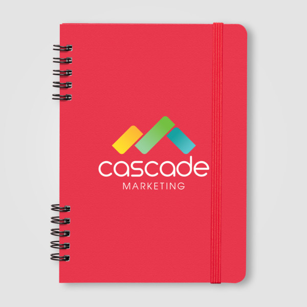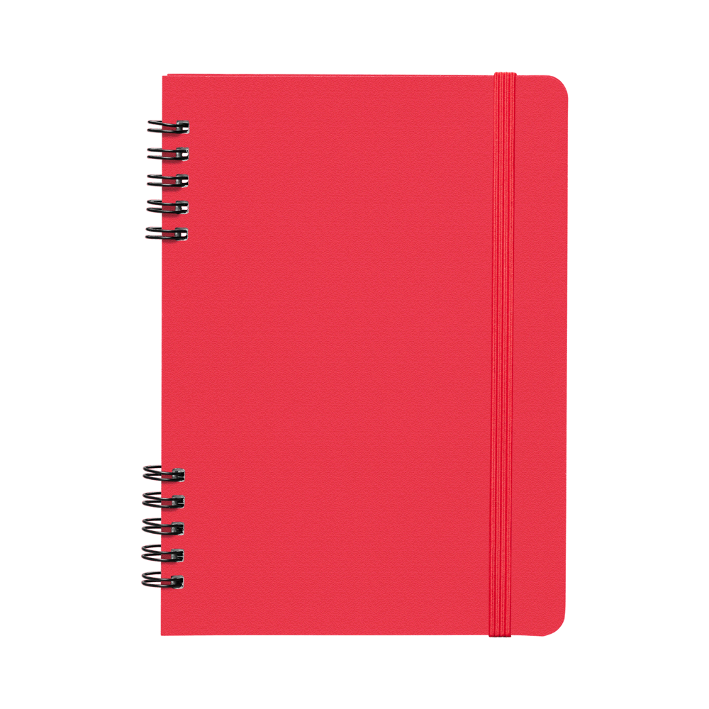 **Coming soon – Mid April** Meet the Jora Notebook, a stylish choice for your notes. This A5 notebook features a durable hard cover made from polyurethane and is held together by a sturdy black metal spiral binding. The unique spiral design is split into two parts, and its size allows you to easily fit a pen within the binding for convenience. Inside, the notebook contains 80 sheets of 80 gsm FSC®-certified lined white paper, ensuring every page supports responsible forestry. A matching colour elastic band closure keeps the notebook secure when you're on the go, making this a functional and conscious option.