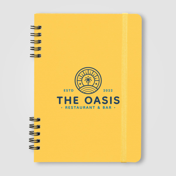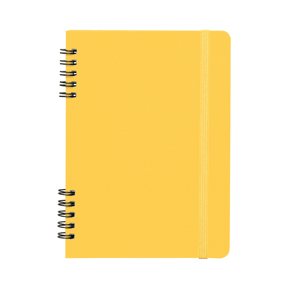 **Coming soon – Mid April** Meet the Jora Notebook, a stylish choice for your notes. This A5 notebook features a durable hard cover made from polyurethane and is held together by a sturdy black metal spiral binding. The unique spiral design is split into two parts, and its size allows you to easily fit a pen within the binding for convenience. Inside, the notebook contains 80 sheets of 80 gsm FSC®-certified lined white paper, ensuring every page supports responsible forestry. A matching colour elastic band closure keeps the notebook secure when you're on the go, making this a functional and conscious option.