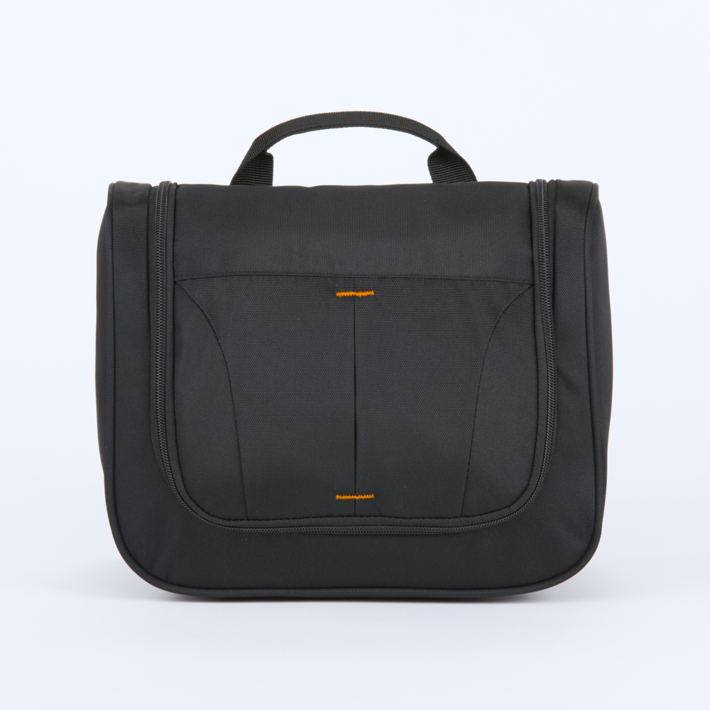 A functional and stylish accessory bag, perfect for storing cosmetics, hygiene items, and small essentials while traveling. With its thoughtful design and compact size, it is ideal for both short trips and longer journeys. • Modern design: Classic black color with minimalist detailing, giving the bag an elegant and professional look. • Spacious interior: Main compartment with multiple dividers to organize cosmetics and accessories with ease. • Additional pockets: Internal mesh dividers and a zippered pocket for storing small items. • Built-in hook: Allows the bag to be hung on a hanger or rod, ensuring easy access to its contents. • Durable construction: Made from sturdy, water-resistant material, resistant to daily wear and tear. • Convenient handle: Makes it easy to carry the bag by hand. This bag is the perfect solution for those who value organization and functionality while traveling. It ensures that all essential items are always within reach and also makes a great elegant gift.