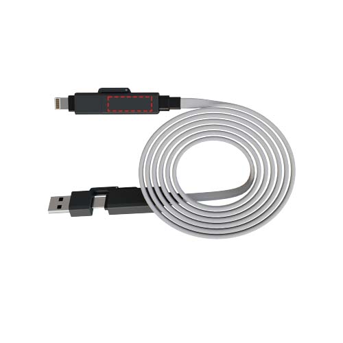 Cable de carga superrápida magnético de 60 W que sirve para smartphones, tabletas y portátiles. El cable plano de 1 metro cuenta con conectores tipo C y Lightning, cordones fabricados con botellas de plástico reciclado y tapas de aleación de zinc duraderas. Con su doble entrada USB-A y USB-C, garantiza una compatibilidad del 100 % con los modelos de ordenador más recientes. Totalmente compatible con "Apple CarPlay" y "Android Auto". Se puede personalizar mediante grabado láser en la tapa de zinc. Se entrega en una bolsa de TPU reciclable con una inserción de papel reciclado.