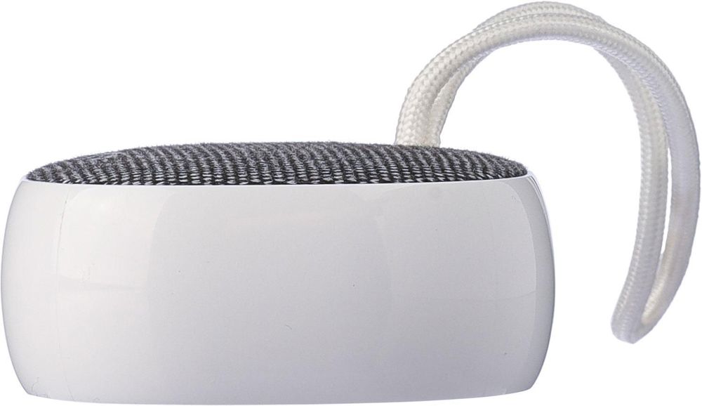 Altavoz inalámbrico de ABS reciclado y tela rPET con un pequeño cordón de nailon. Batería de 300...más