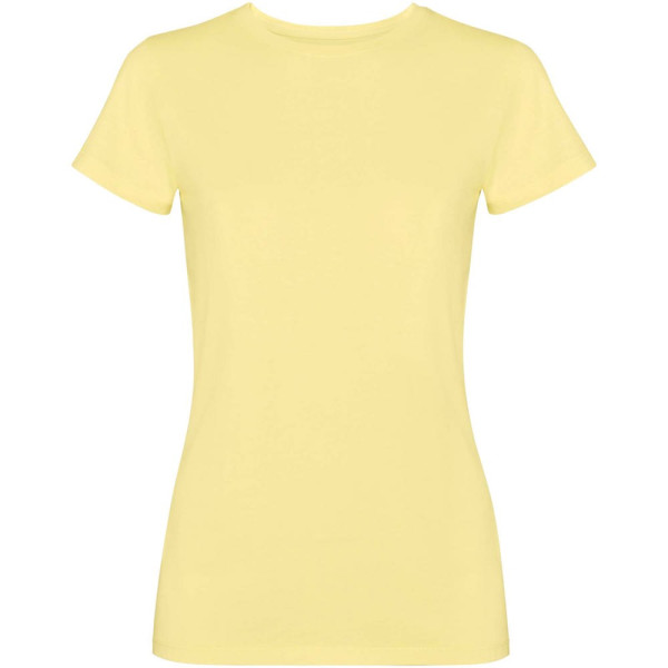 Camiseta de manga corta para mujer. Acabado con lavado ácido, cuello redondo de canalé 1x1 y costuras laterales. Punto de cubierta tono sobre tono en el cuello.