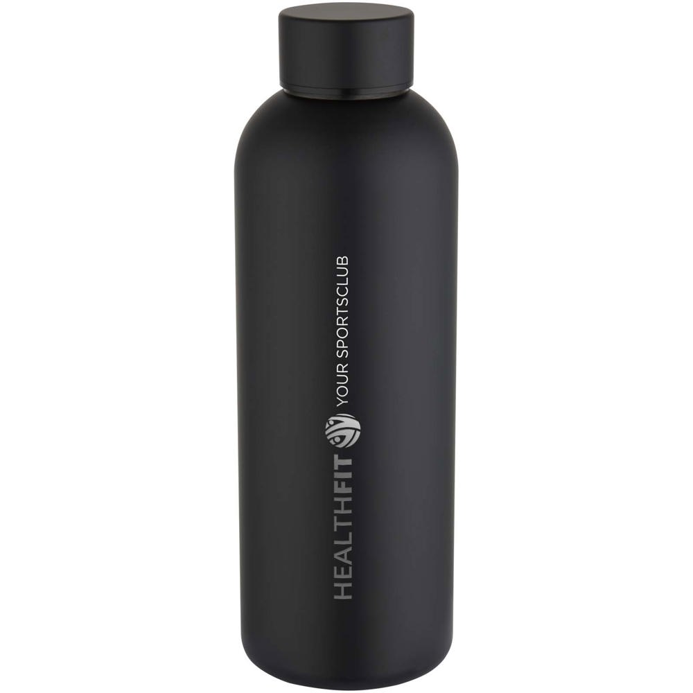 La botella "Spring" de pared simple de acero inoxidable reciclado con certificado RCS tiene una tapa de rosca y un acabado pulverizado mate. Ligera y duradera, esta cantimplora es ideal para la hidratación diaria. Capacidad: 750 ml.