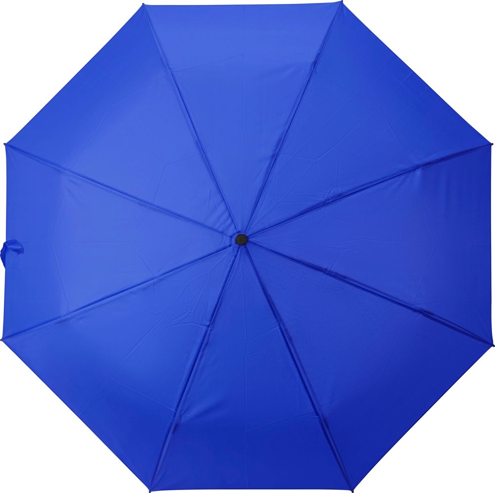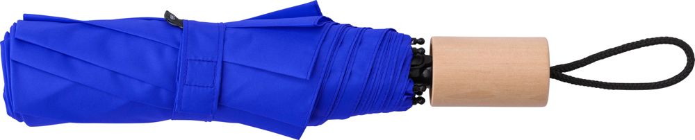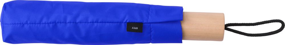 Paraguas plegable de pongee rPET 190T con 8 paneles y mango de madera de roble. Funda a juego incluida.