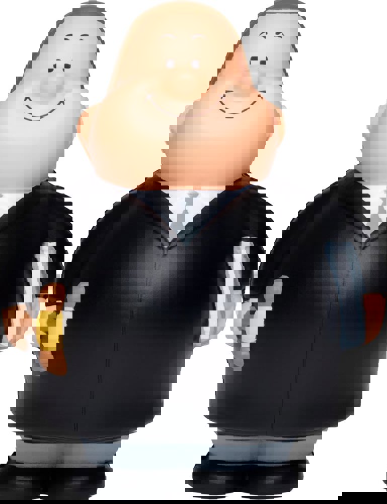 Judge Bert® has pronounced the verdict: Stress gets a break. Relaxation comes almost automatically with a smile. For harder cases: simply squeeze judge Bert® to reduce stress. Due to the material's properties, the product returns to its original shape.