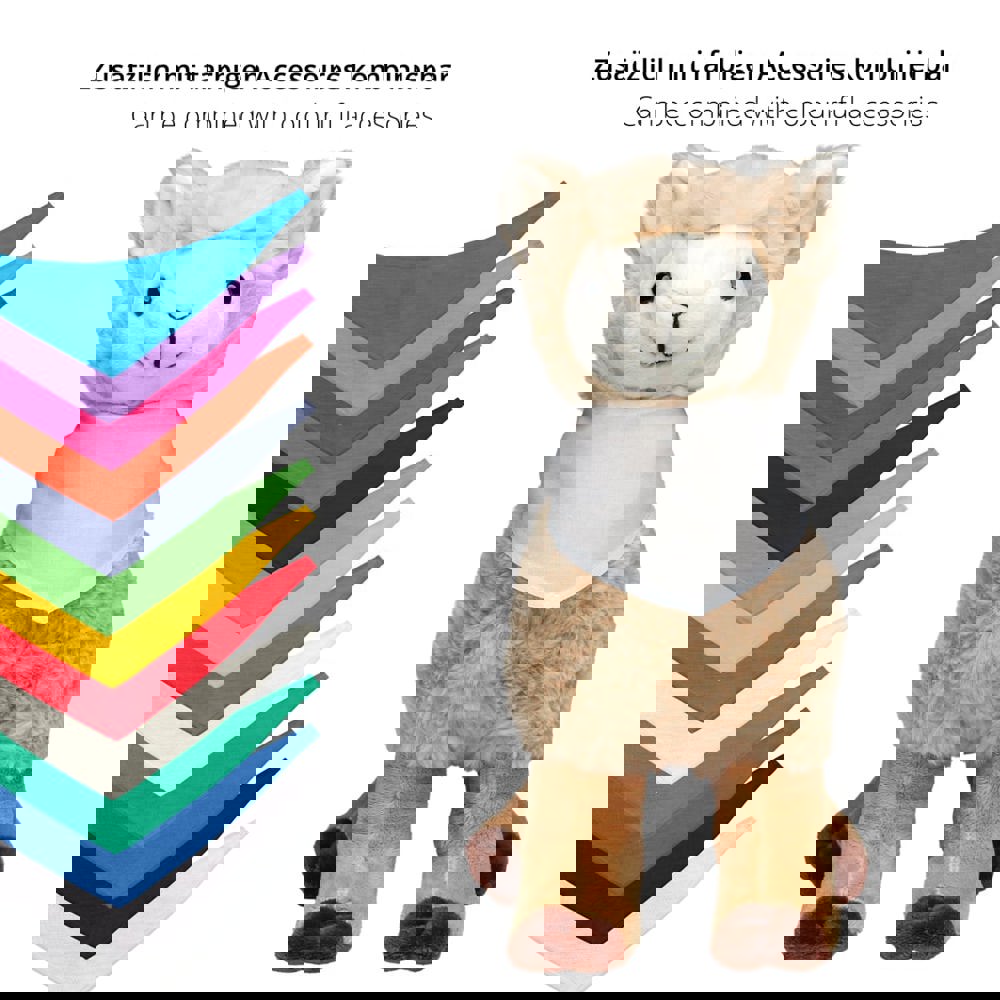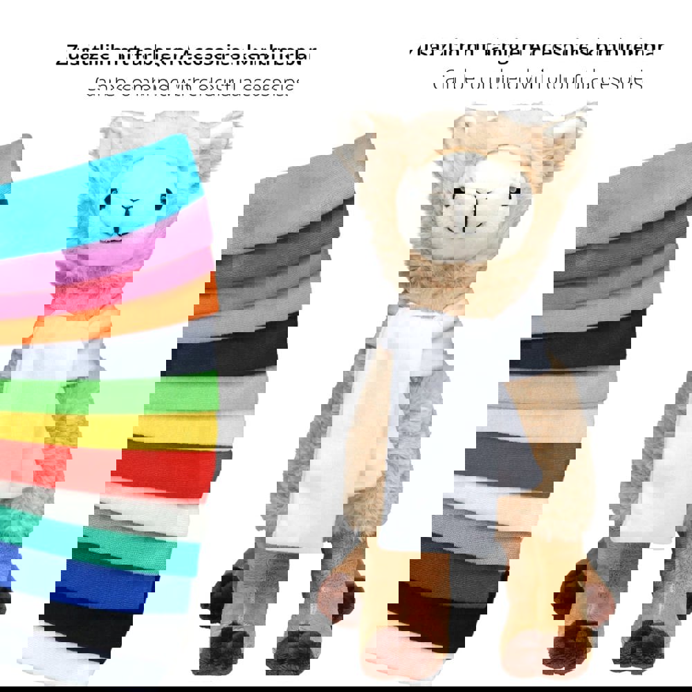 Cuddly heroes for kids and adults that are free from harmful substances and tested for safety: Our soft and huggable Lama brings positive emotions to the playroom, bedroom and living-room. There are manifold options for applying logos or advertising messages, in addition to a sew-on doming or promotional label, imprinted fashion items and accessories are also available for the cuddly toys, such as T-shirts, neckerchiefs and scarves.