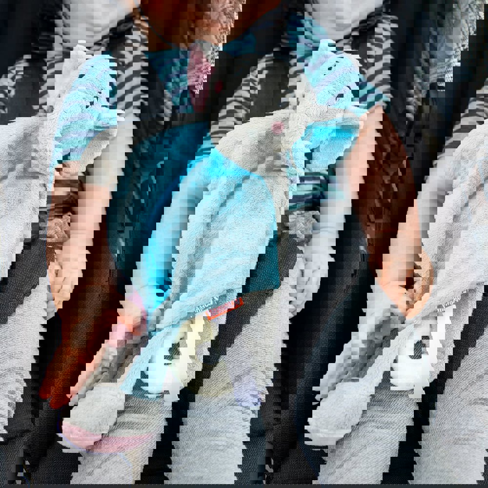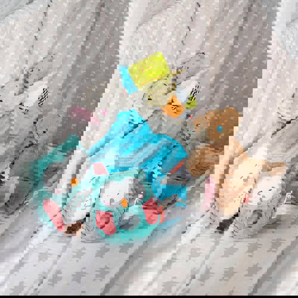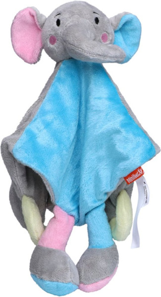 The different materials of the elephant invite little hands to grasp. The friendly embroidered face and the bright colours conjure up a radiant smile on the face of the little ones. The super fluffy cuddly blanket elephant has what it takes to become a favourite comforter.