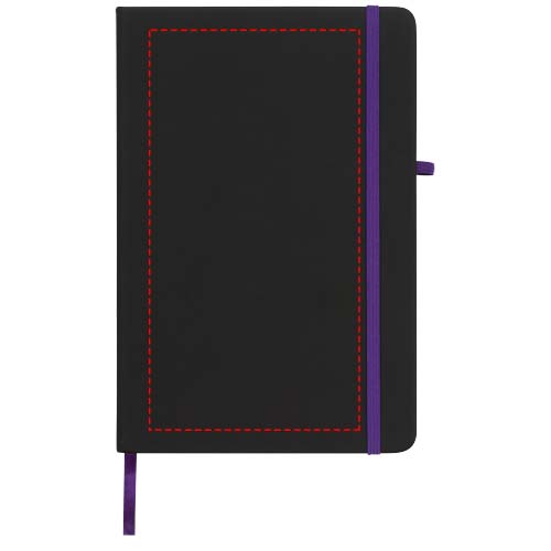 La libreta "Noir" presenta una tapa de PU negra de tacto suave para aportarle un acabado táctil. Cada libreta presenta una banda de cierre en color, soporte para bolígrafo y cinta marcapáginas. La libreta contiene 96 hojas (70 g/m2) de papel rayado en tono crema.