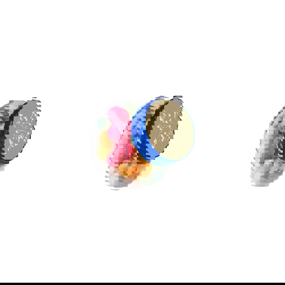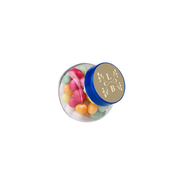 Micro glass jar 50 ml with blue lid, including full colour printed sticker on the lid, filled with Colourd Sugar Eggs