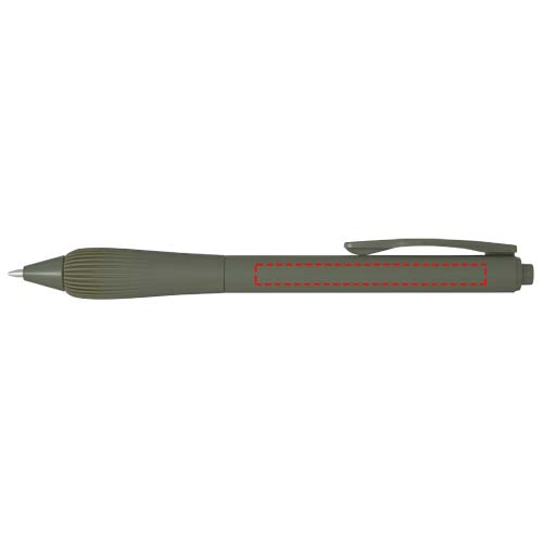 Stylo bille en plastique recyclé avec corps caoutchouté et grip en TPR. Couleur de l'encre : Bleue. Longueur d’écriture : 1 000 mètres. Taille de la pointe : 1,0 mm.