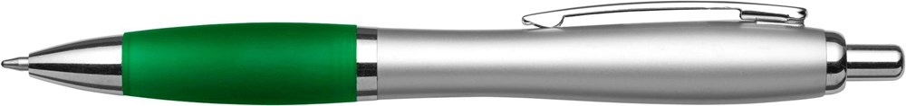 Stylo bille en ABS recyclé avec embase en gomme et clip en métal, mine bleue.