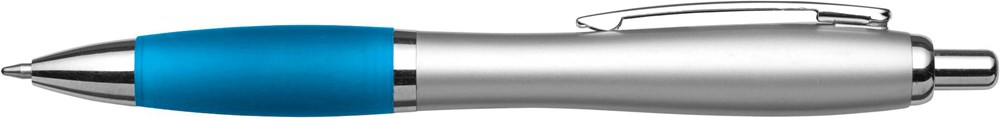 Stylo bille en ABS recyclé avec embase en gomme et clip en métal, mine bleue.