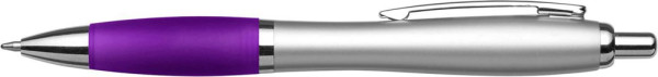 Stylo bille en ABS recyclé avec embase en gomme et clip en métal, mine bleue.