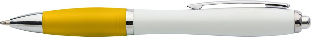 Stylo bille en ABS recyclé avec embase en gomme et clip en métal, mine bleue.