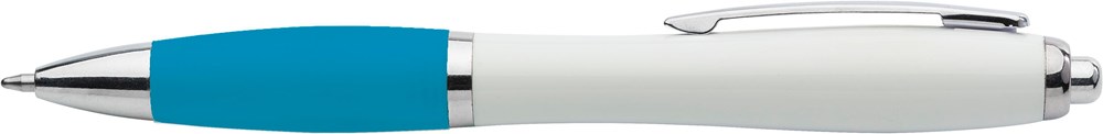Stylo bille en ABS recyclé avec embase en gomme et clip en métal, mine bleue.