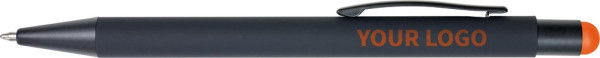 Stylo bille en métal toucher gomme avec embout pour écran tactile, mine bleue. Gravé, le rendu de...plus