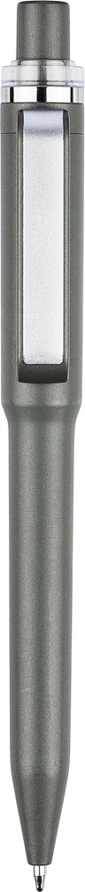 Stylo bille en ABS recyclé, finition métallique, mine bleue d’une longueur d’écriture de 800 mètres et logo ABS recyclé moulé.