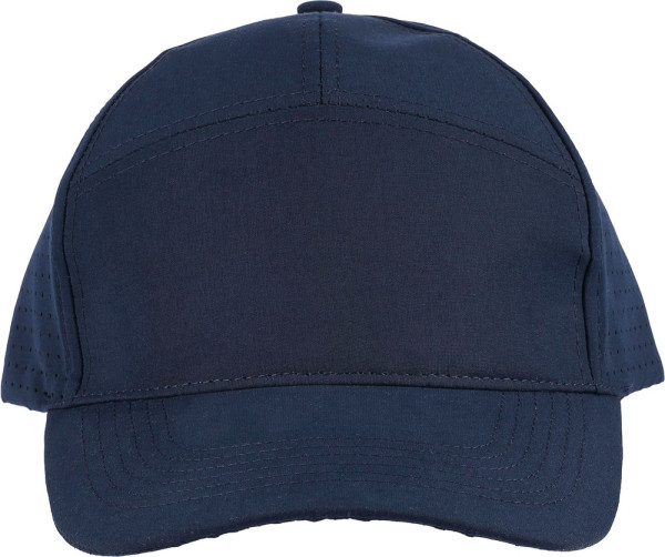 Casquette de 7 panneaux en polyester avec trous d’aération découpés au laser.