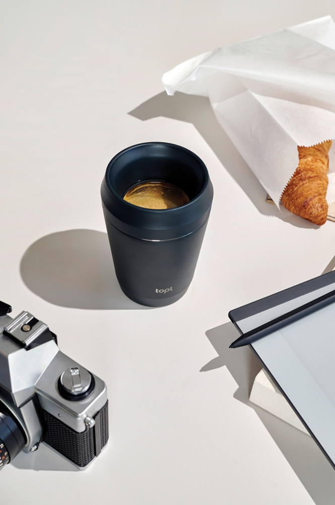 Voici le gobelet Topl d'une contenance de 236 ml. Fabriqué à partir de matériaux recyclés certifiés RCS et isolé sous vide, il conserve les boissons à la température idéale. Son design de couvercle 360° transparent breveté offre praticité et style pour vos aventures quotidiennes, que vous vous promeniez dans le parc ou que vous vous rendiez au travail.