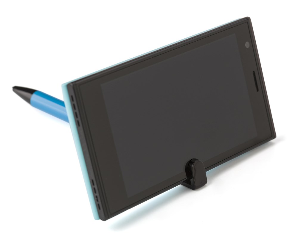 Stylo bille en aluminium avec support de téléphone, mine bleue.